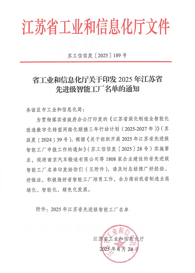 2025年江苏省先进级智能工厂