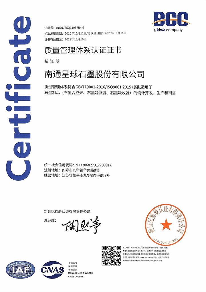 质量管理体系认证证书